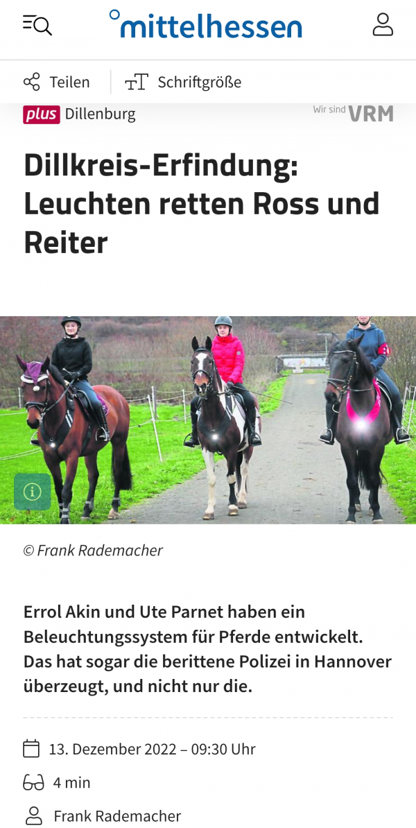 Unser innovatives Reitleuchtsystem NIGHTHORSE PATHFINDER bietet dir und deinem Pferd mehr Sicherheit und erfüllt die gesetzlichen Vorgaben. Zudem ist es leicht anzuwenden und komfortabel für dein Pferd. Durch die integrierten Akkus verfügt die Beleuchtung über eine lange Leuchtdauer. Andere Verkehrsteilnehmer erhalten die Chance, durch frühzeitiges Erkennen abzubremsen oder auszuweichen und somit einen Unfall zu verhindern. Auch einen Ausritt im Gelände kannst du mit NIGHTHORSE PATHFINDER in Ruhe genießen und bist nicht mehr auf das Tageslicht angewiesen.
