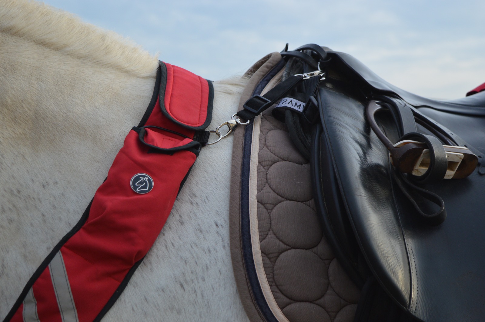 - Sattelhaube (Dressur- / Spring- / Vielseitigkeitssattel oder Westernsattel) inklusive Halterung und LED Rückleuchte (Rot) mit integriertem Akku